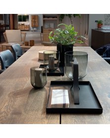 Denne firkantede bakke er et funktionelt og æstetisk element i indretningen. Bakken er fremstillet i sortmalet metal med en smånistret overflade, der giver et roligt og eksklusivt udtryk.