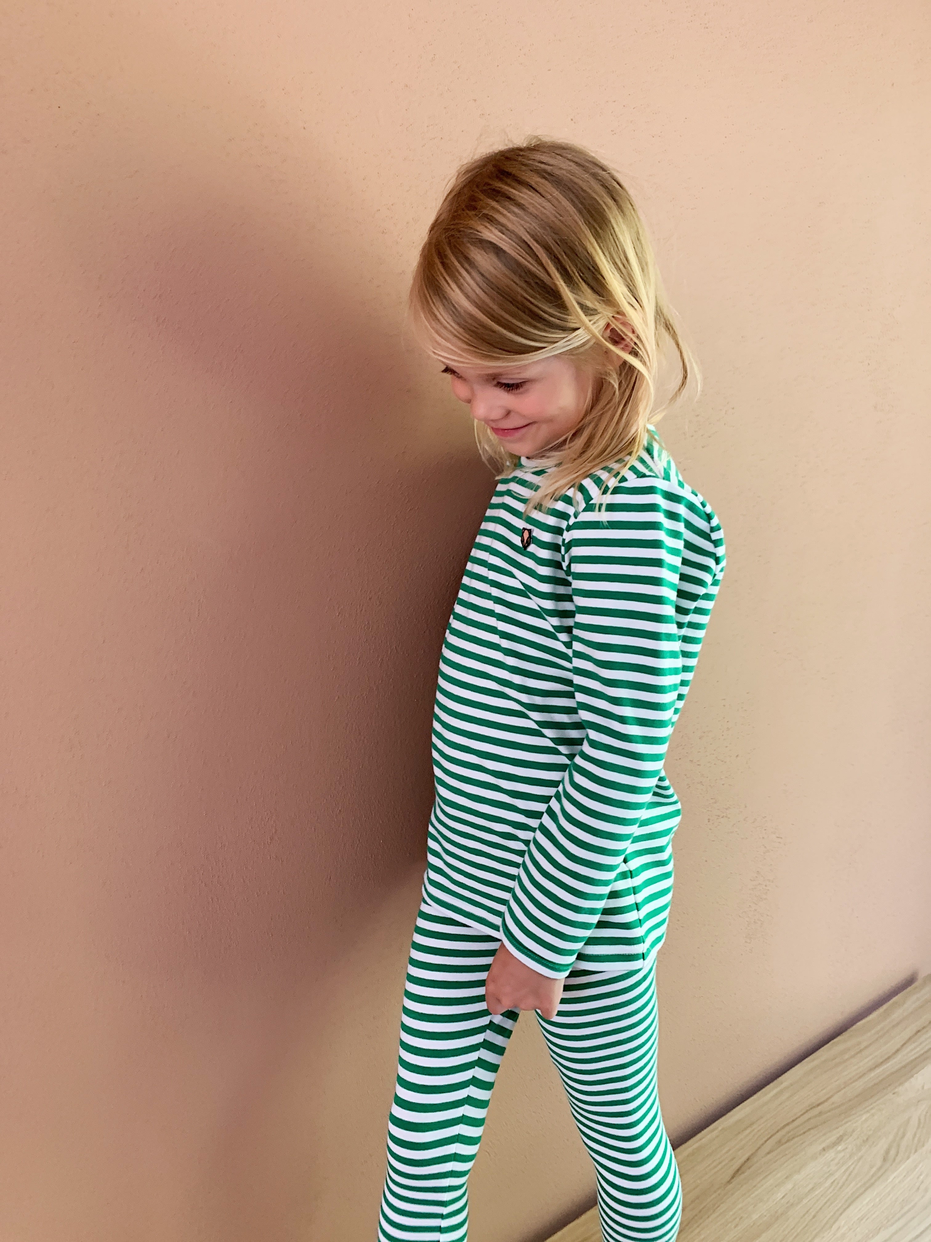 Basis unisex leggings med striber og i en lækker blød øko-tex certificeret bomuld med elastan, så den gode pasform bevares. Mix eller match med overdel i samme print. Nu er vores striber også muligt som det sødeste Mini & Me Match