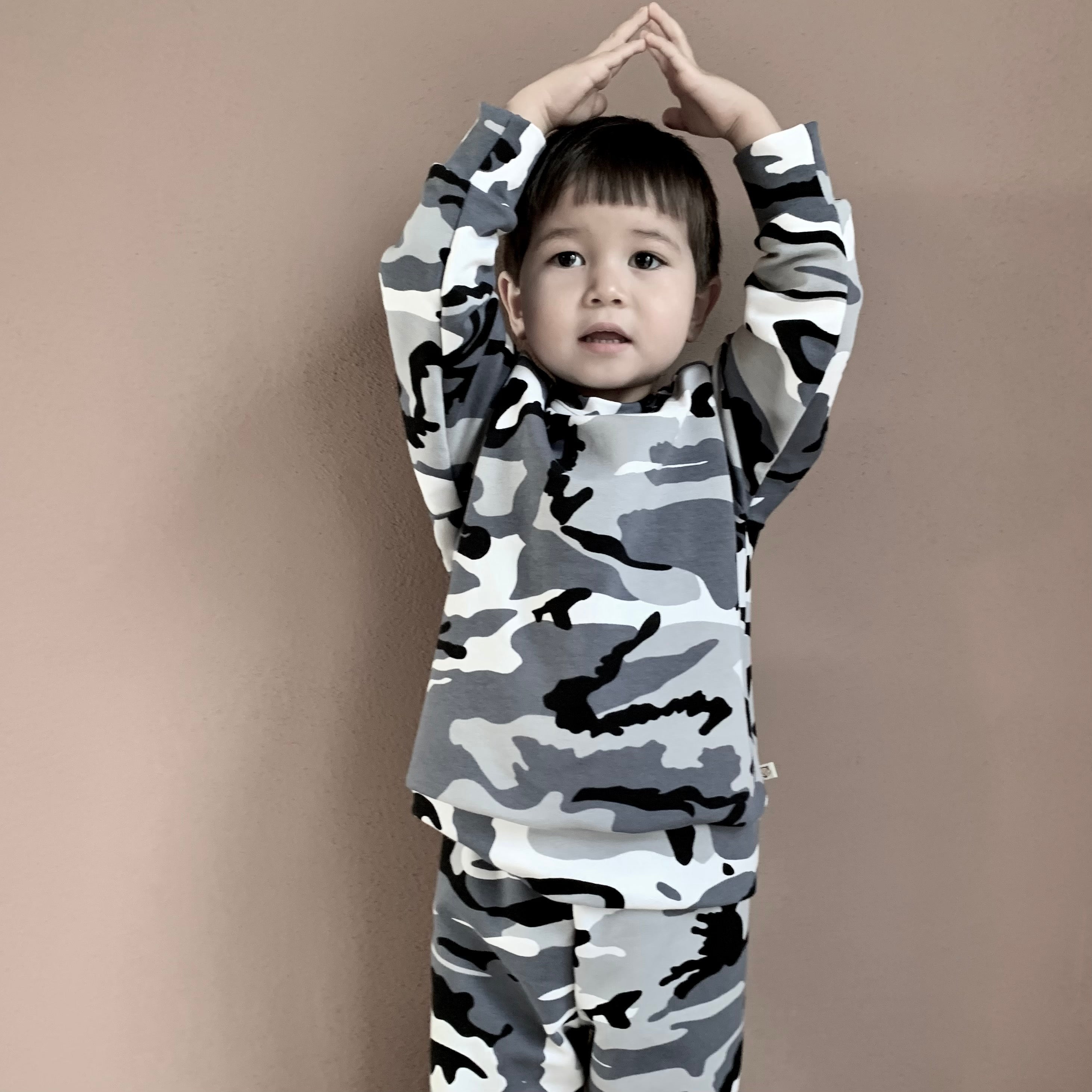 Cool jogging bukser i gråt camouflage print og i den blødeste kvalitet. Miks eller match den med sweatshirt i samme print