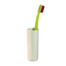 Tandbørstevase, tandbørstekrus, tandkrus, tandbørsteholder - kært barn har mange navne.\nSmuk og hygiejnisk tandbørsteholder i keramik. Slut med at dele bakterier og virus med resten af familien! Også ideel til makeup pensler eller den enlige blomst.\nSuppler evt. med en kop til tandpastaen.\nDa tandbørstevaserne er håndlavet kan der være små variationer.\nKan gå i opvaskemaskine.\nPorcelæn.\nBredde: 3,5 cm.\nHøjde: 10,5 cm.