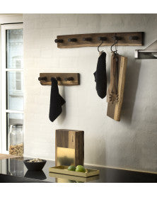 Denne rustikke knagerække med 3 knager i røget eg er designet og produceret i Danmark. Med sin kompakte størrelse på 35 cm er den ideel til mindre vægflader, smalle entréer eller som del af en større knagerække-løsning.