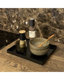 Brug bakken til opbevaring af magasiner og blade, på kontoret som organizer til notesblokke og papirer eller som base for et stemningsfuldt stilleben med lys, vaser og små skåle. Når ting samles på en bakke, fremstår indretningen mere rolig og velorganiseret.