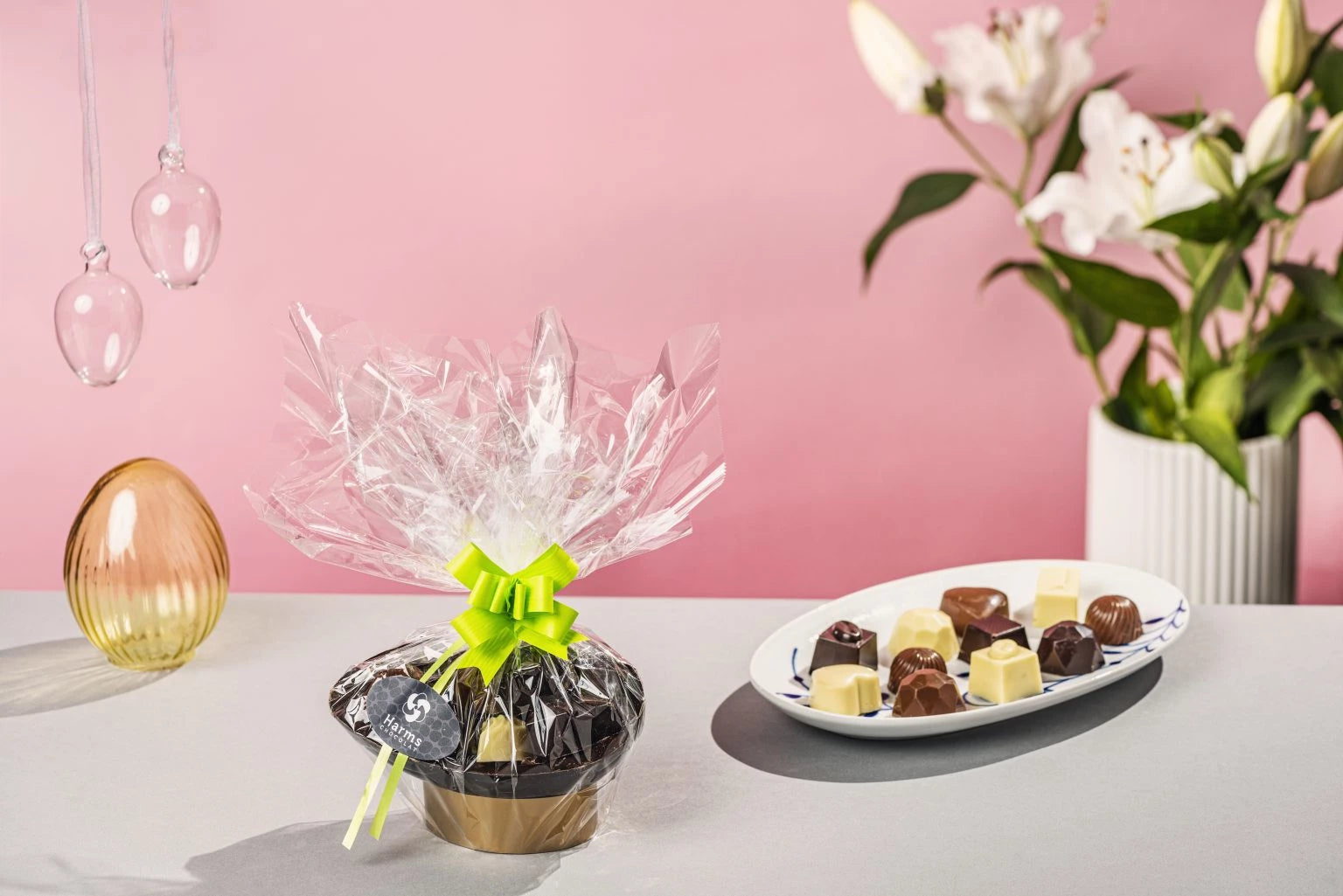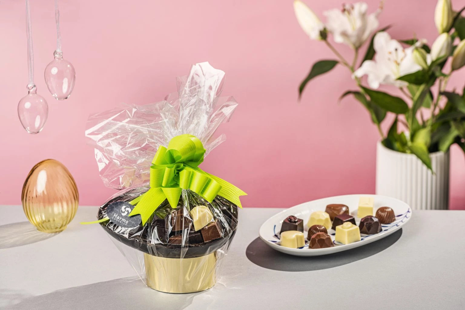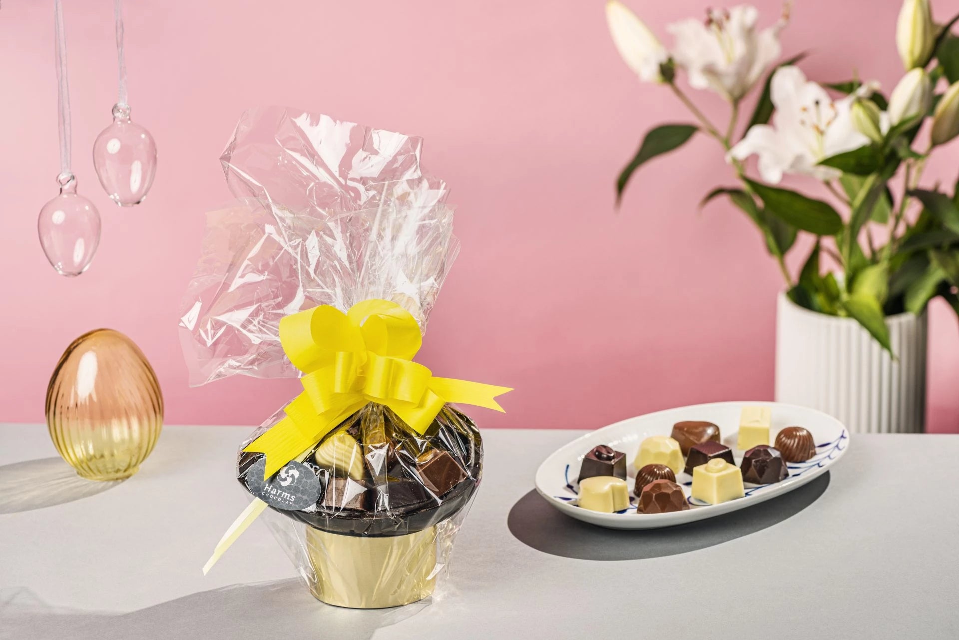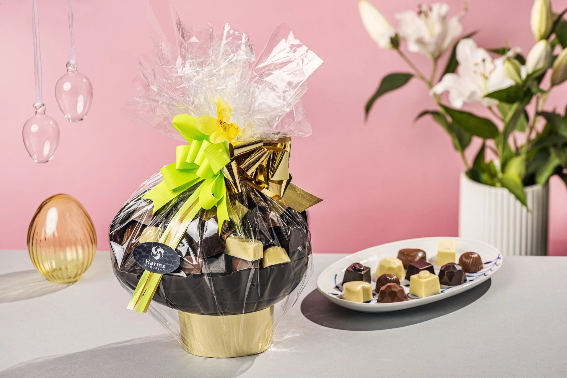Chokoladeæg med fyldte chokolader – 185 g til 1100 g – Harms Chocolat