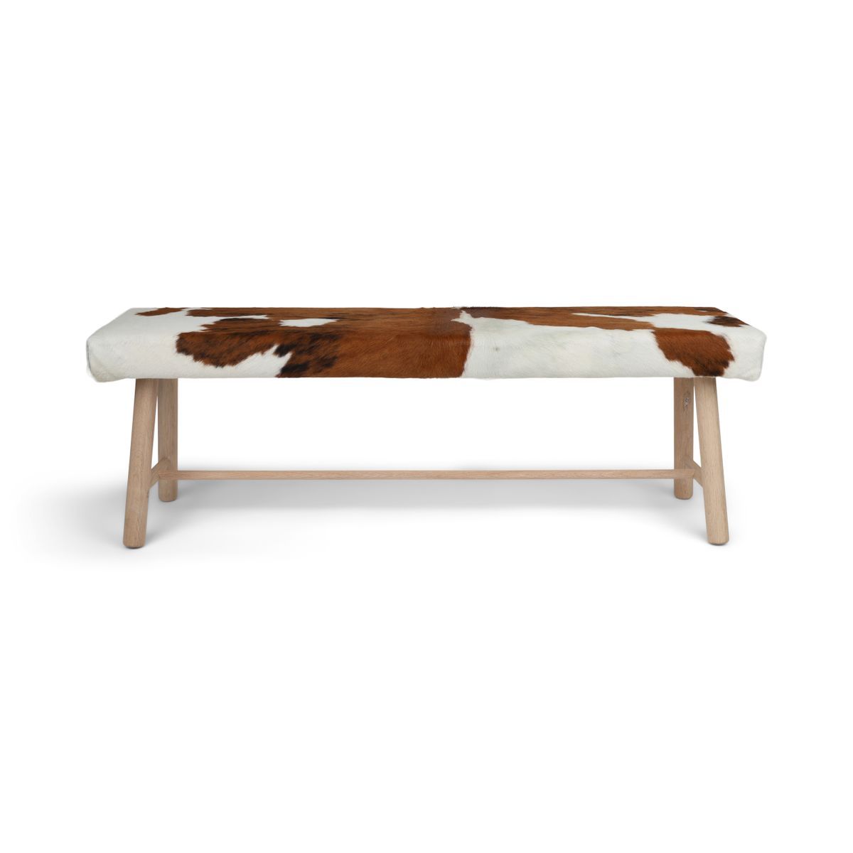 Med målene L140xB35xH45 cm har bænken et sæde med førsteklasses skumpolstring, betrukket med det slidstærkt koskind. Hvert skind er unikt, hvilket går, at bænken kommer til at sætte sit individuelle præg på sine omgivelser.